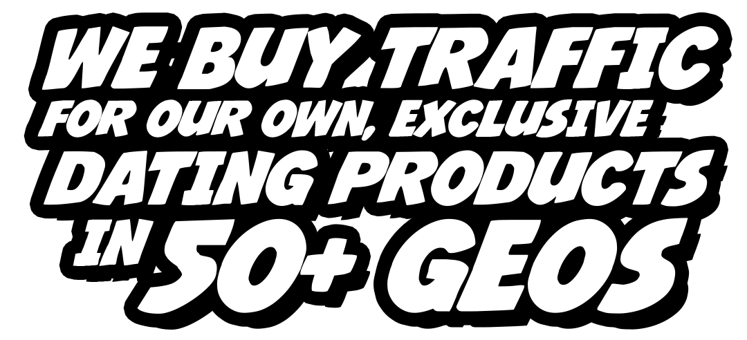 TrafficPartner.com has been in business since 1997 and offers as direct advertiser casual and mainstream dating products as well as community entertainment systems. Apps (iOS & Android), mobile web and desktop versions are available in 50+ countries (DACH, NORDICS, UK, CA, FR, IT, AU, NZ, ...). We own all products or have full exclusivity (nobody else can even have a white label).